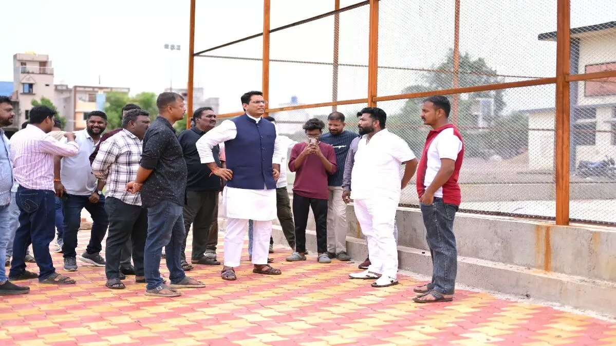 नये क्रिकेट ग्राउंड के निर्माण कार्य का जायजा लेते हुए विधायक देवेंद्र यादव
