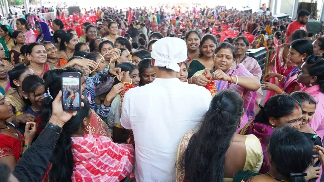 विधायक देवेंद्र यादव को हजारों महिलाएं और युवतियां ने बांधी राखी
