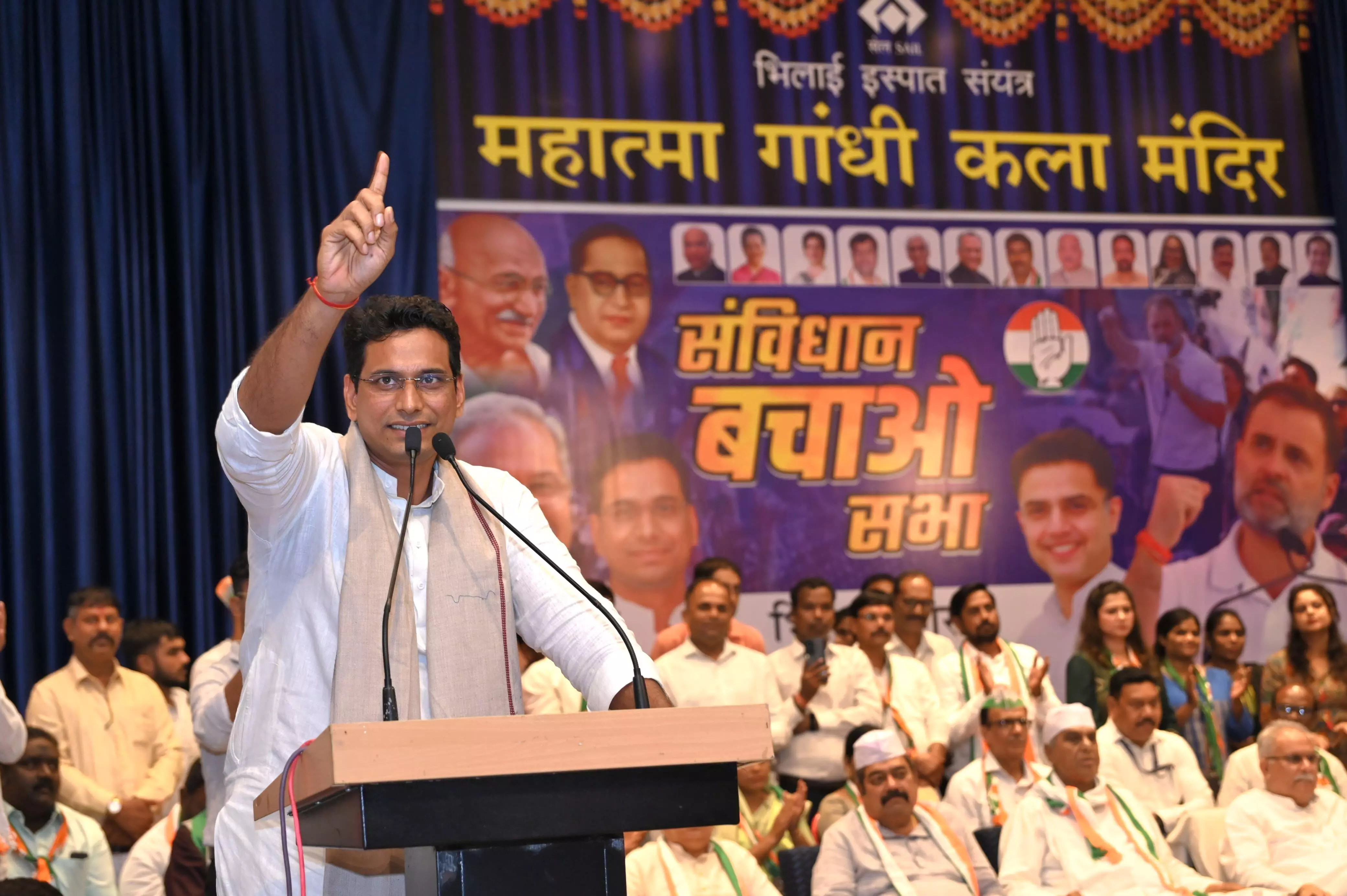 भिलाई। छत्तीसगढ़ के भिलाई में कांग्रेस पार्टी द्वारा रविवार को भिलाई नगर विधानसभा क्षेत्र में संविधान बचाओ सभा का भव्य आयोजन किया गया। इस सभा में हजारों की संख्या में कांग्रेस समर्थक, आम नागरिक एवं पार्टी पदाधिकारी बड़ी संख्या में शामिल हुए। आयोजन स्थल सिविक सेंटर परिसर जनसमूह से खचाखच भरा रहा और पूरे क्षेत्र में एक उत्साही और जागरूकता से भरा माहौल देखने को मिला।
