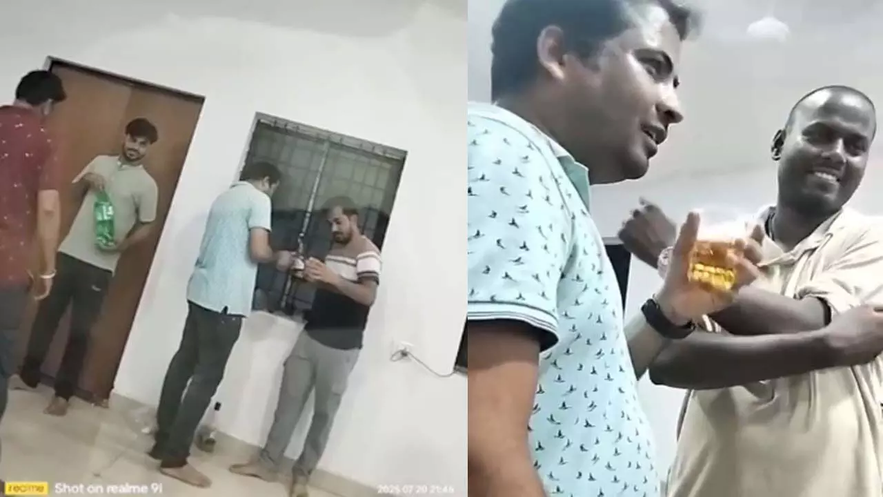 विदाई पार्टी के दौरान शराब पीते हुए SBI के कर्मचारी
