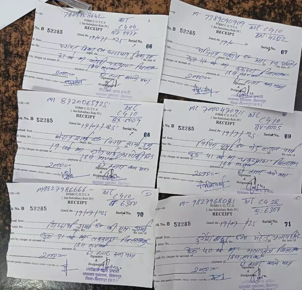 पंकज गुप्ते-बिलासपुर। छत्तीसगढ़ के बिलासपुर में लग्जरी कारों का विडियो सोशल मिडिया पर जमकर वायरल हो रहा है। यहां पर शहर के रईसजादों ने बिलासपुर-रायपुर नेशनल हाईवे पर को जाम कर इसका इंस्टाग्राम पर रील शेयर भी किया। हरिभूमि डॉट कॉम ने इस खबर को प्रमुखता से प्रकाशित किया था। जिसके बाद ट्रैफिक पुलिस ने वेदांश शर्मा समेत छः पर 12 हजार का जुर्माना ठोका है। प्रति कार 2- 2 हजार का काटा गया चालान। इसके साथ ही सभी का ड्राइविंग लाइसेंस भी सस्पेंड किया गया है।