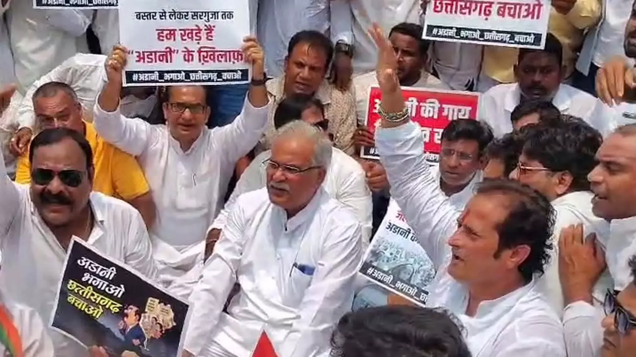 राजधानी रायपुर के वीआईपी चौक पर पूर्व मुख्यमंत्री भूपेश बघेल भी पहुंच गए हैं। कांग्रेस के प्रदर्शन में शामिल हुए हें भूपेश बघेल। यहां पहुंचते ही भूपेश बघेल ने कहा- अडाणी और भाजपा के खिलाफ है यह आर्थिक नाकेबंदी। सड़क जाम कर विरोध कर रहे हैं भूपेश बघेल। बड़ी संख्या में कांग्रेस कार्यकर्ता भी मौजूद। नेशनल हाईवे में दोनों तरफ वाहनों की लंबी कतार लगी। वीआईपी रोड भी जाम, एयरपोर्ट जाने वाले भी फंसे।