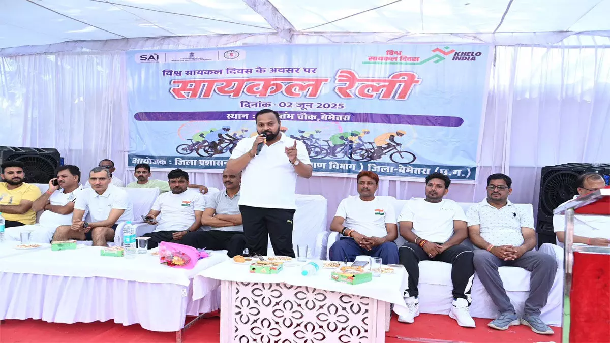 सूरज सिन्हा- बेमेतरा। छत्तीसगढ़ के बेमेतरा में विश्व सायकल दिवस के अवसर पर सायकल रैली का आयोजन किया गया। यह कार्यक्रम जिला प्रशासन तथा खेल एवं युवा कल्याण विभाग के संयुक्त तत्वावधान में संपन्न हुआ। इस दौरान मुख्य अतिथि के रूप में विधायक दीपेश साहू उपस्थित रहे। उन्होंने रैली को संबोधित करते हुए कहा कि, सबसे बड़ा धन स्वास्थ्य है। साइकिल चलाना न केवल हमारे शारीरिक और मानसिक स्वास्थ्य को बेहतर बनाता है, बल्कि पर्यावरण संरक्षण एवं ईंधन बचत का भी सशक्त माध्यम है।