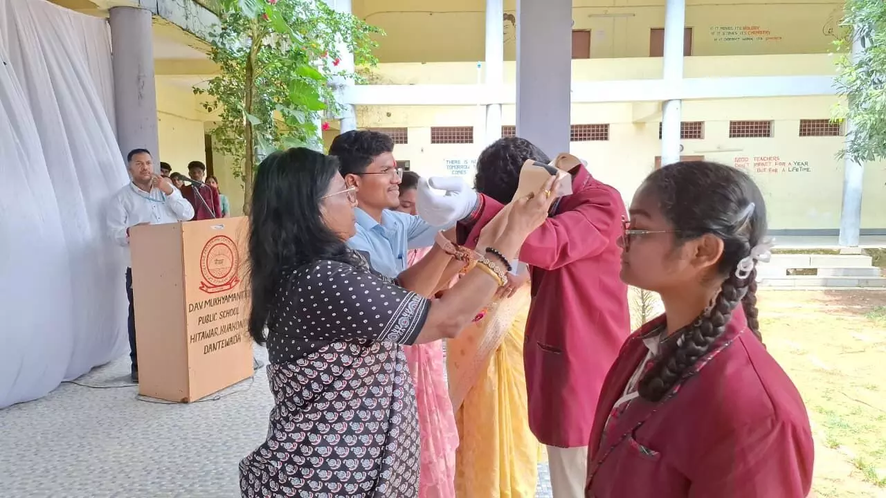यामिनी पांडे- दंतेवाड़ा। डीएवी मुख्यमंत्री पब्लिक स्कूल हितावर में शुक्रवार को विद्यार्थी परिषद का गठन एवं अलंकरण समारोह का आयोजन किया गया। कार्यक्रम के मुख्य अतिथि के रूप मे जनपद कुआकोंडा सीईओ एम आर कश्यप, विशेष अतिथि वरिष्ठ नेता रामबाबू सिंह गौतम, एकलव्य विद्यालय प्रभारी कमल एवं प्राचार्या कैरोलिन मैरी ओ कॉनर उपस्थित रहे। इस महत्वपूर्ण अवसर पर सभी अतिथियों एवं प्राचार्या ने एक साथ दीप प्रज्वलित कर ईश्वर का आशीर्वाद प्राप्त कर समारोह का उद्घाटन किया।