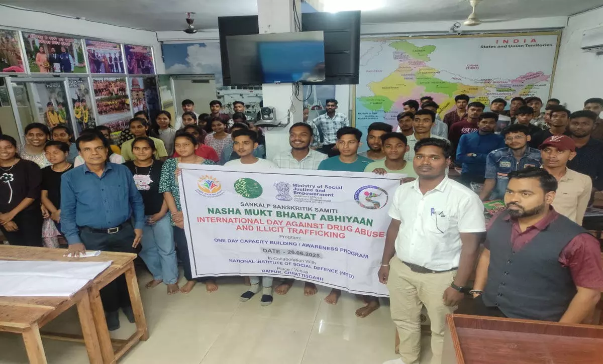 रायपुर। छत्तीसगढ़ की राजधानी रायपुर में नशीली दवाओं के दुरुपयोग और अवैध तस्करी के खिलाफ अंतर्राष्ट्रीय दिवस के अवसर पर कई कार्यक्रमों का आयोजन किया गया। यह कार्यक्रम संकल्प संस्कृतिक समिति, सामाजिक न्याय, अधिकारिता मंत्रालय, भारत सरकार द्वारा संचालित परियोजना राज्य स्तरीय समन्वय एजेंसी, छत्तीसगढ़ (SLCA) के द्वारा आयोजित किया गया।