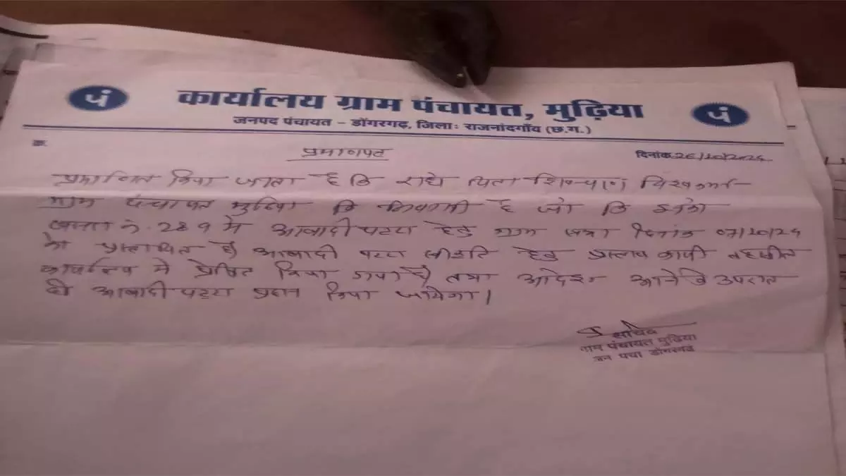 राजा शर्मा- डोंगरगढ़। छत्तीसगढ़ में राजनांदगांव जिले के डोंगरगढ़ जनपद पंचायत के अंतर्गत आने वाले ग्राम मुड़िया में सरकारी ज़मीन को लेकर बड़ा खुलासा हुआ है। गांव के पूर्व सरपंच द्वारा अपने कार्यकाल में कथित रूप से रंगदारी दिखाते हुए शासकीय भूमि को अपने करीबी और संपन्न लोगों के नाम पट्टा करने का मामला सामने आया है। चौंकाने वाली बात यह है कि यह पूरा काम बिना पटवारी और तहसीलदार की मौजूदगी के, ग्राम पंचायत स्तर पर ही कर लिया गया।