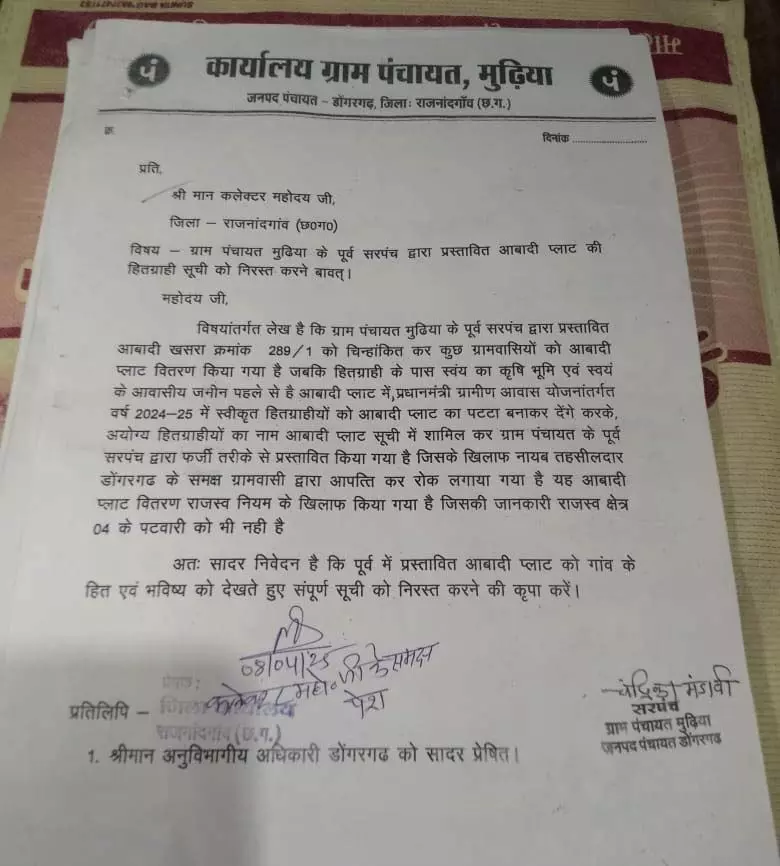 ग्राम मुड़िया में शासकीय जमीन पर कब्जे का मामला उजागर हुआ है, जांच में पूर्व सरपंच और सचिव के खिलाफ गंभीर अनियमितताओं के आरोप लगे हैं। @RajnandgaonDist #Dongargarh #Chhattisgarhnews pic.twitter.com/E0nSTeVyiK
