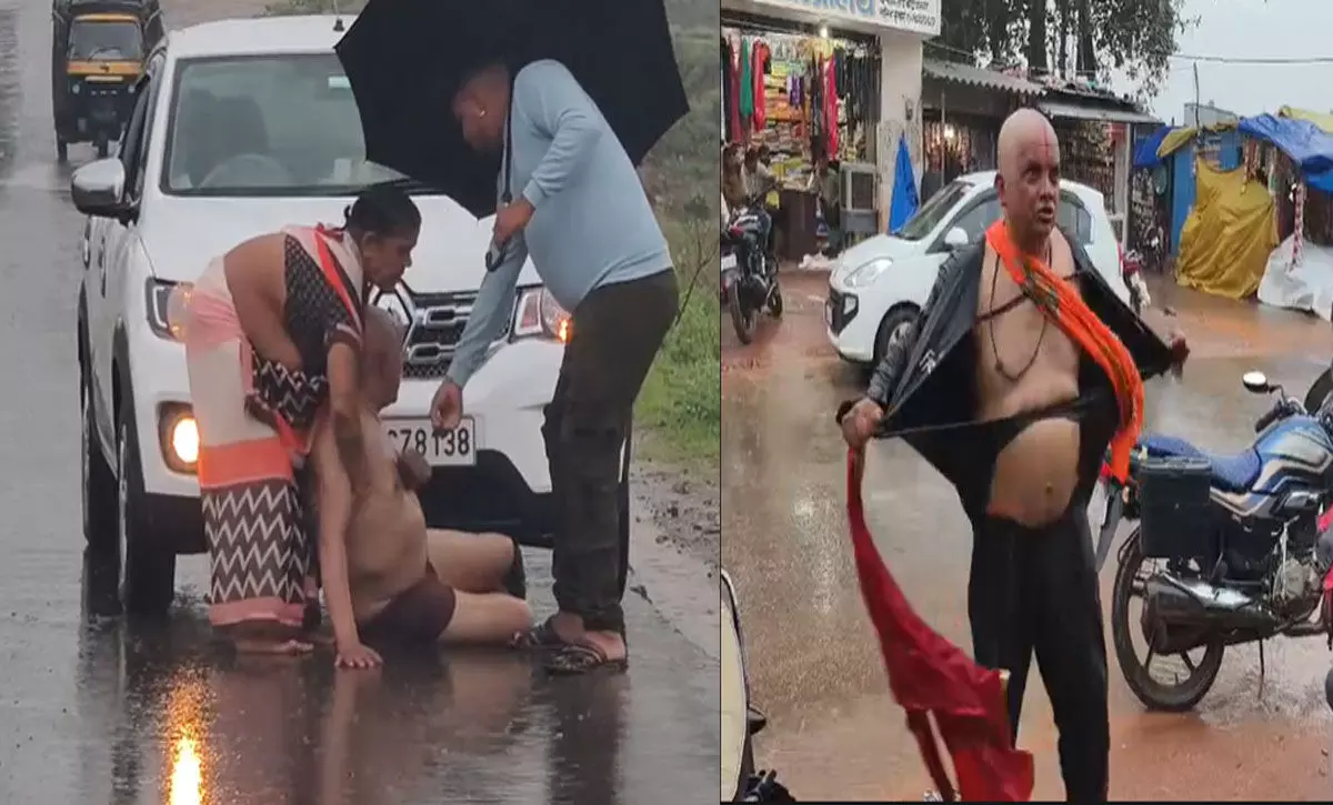 नशे में धुत्त बुजुर्ग का हाई वोल्टेज ड्रामा: भारी बारिश के बीच राहगीरों को करता रहा परेशान, देखिए VIDEO