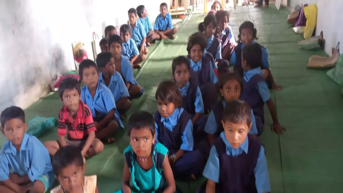 स्कूल भवनों के जर्जर होने के बाद भवनों में पढ़ने को मजबूर बच्चे