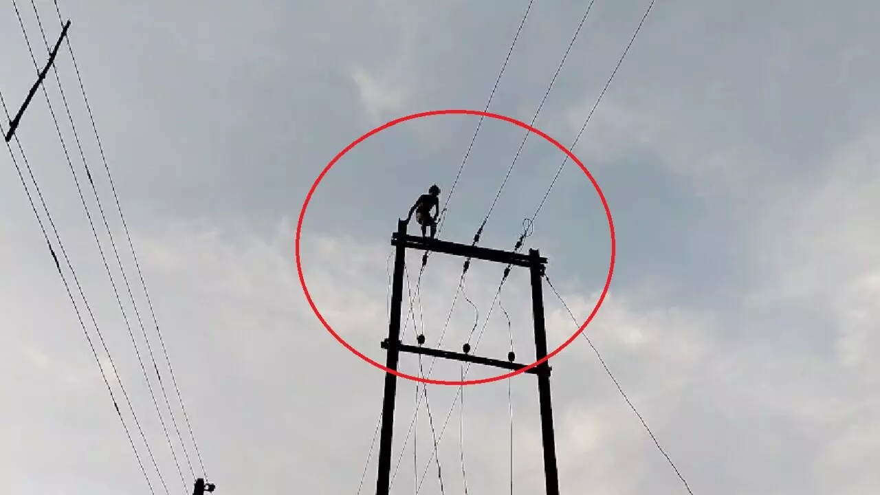 बिजली के ट्रांसफार्मर पर चढ़ा शराबी युवक: मचाया हाई वोल्टेज ड्रामा, डेढ़ घंटे की कड़ी मशक्कत के बाद पुलिस ने नीचे उतारा