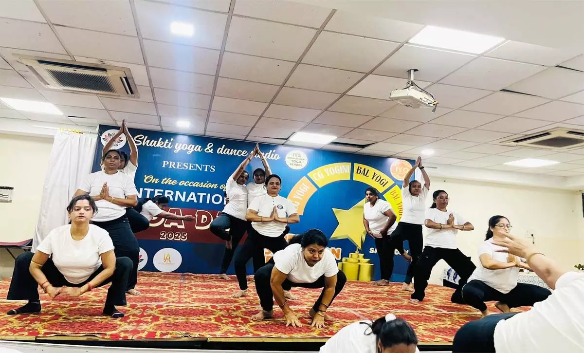 रायपुर। अंतर्राष्ट्रीय योग दिवस के अवसर पर राजधानी रायपुर में शक्ति योग एवं डांस स्टूडियो द्वारा एक भव्य योग प्रतियोगिता का आयोजन किया गया। जिसका उद्देश्य 'योग सभी के लिए' संदेश को जन-जन तक पहुंचाना था। यह आयोजन हेल्पिंग हैंड्स क्लब फाउंडेशन, आर्ट ऑफ लॉगिंग और अखिल भारतीय मारवाड़ी महिला सम्मेलन उमंग शाखा के सहयोग से शानदार सम्पन्न हुआ।