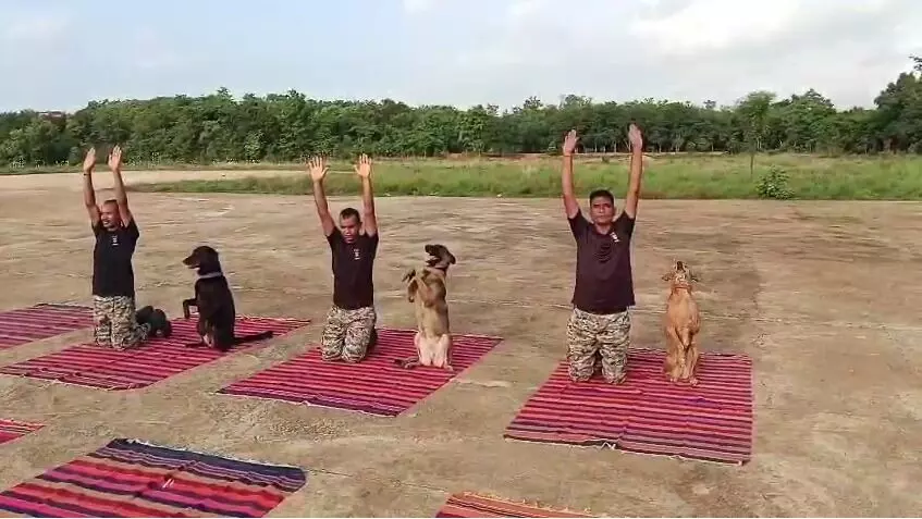 डाग्स ने भी किया योग: जंगलवार फेयर कालेज में जवानों के साथ अभ्यास करते देखिए डाग्स का VIDEO