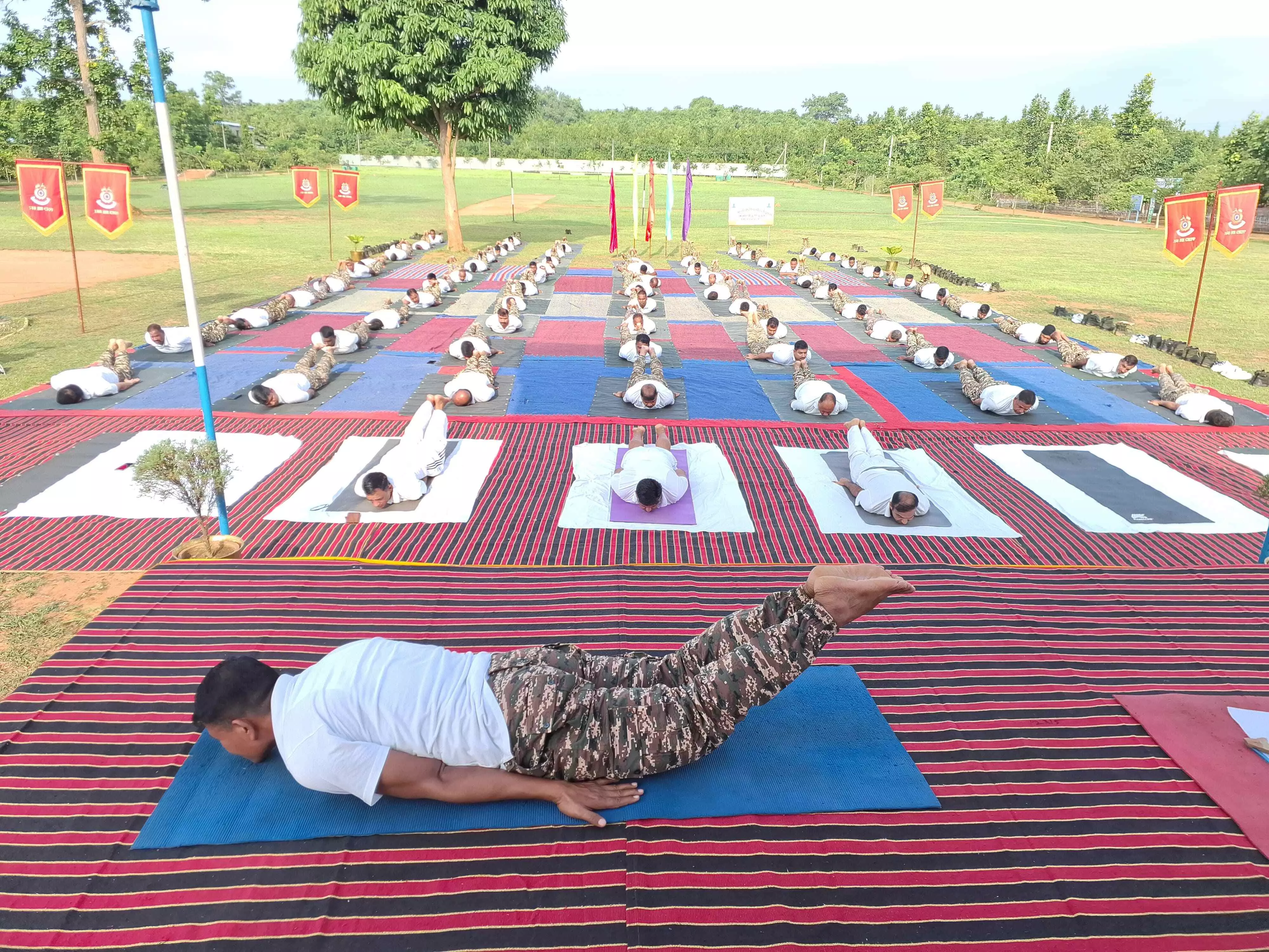 कोंडागांव। छत्तीसगढ़ के कोंडागांव के CRPF 188 वीं बटालियन में अंतरराष्ट्रीय योग दिवस के अवसर पर भव्य कार्यक्रम का आयोजन किया गया। अंतरराष्ट्रीय योग दिवस के अवसर पर कमाण्डेन्ट भावेश चौधरी के मार्गदर्शन में 'ल्व्ळ। थ्व्त् व्छम् म्।त्ज्भ्ए व्छम् भ्म्।स्ज्भ्' थीम के साथ योगा कार्यक्रमों का आयोजन किया गया। जिसमें जवानों के साथ-साथ स्थानीय नागरिकों और स्कूल के छात्र-छात्राओं ने हिस्सा लिया।