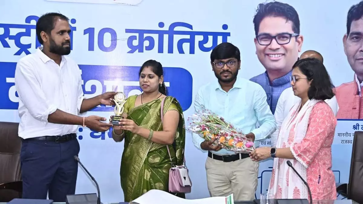 यशवंत गंजीर - कुरुद। छत्तीसगढ़ के धमतरी जिले में सुदूर आदिवासी अंचलों में पढ़ने वाले बच्चों के लिए स्कूलों में 157 स्मार्ट टीवी देने वाले और 5 देशों की 111 नदियों के नाम पर वर्णमाला बनाने वाले साहू दंपत्ति को बुधवार कलेक्टर अबिनाश मिश्रा ने सम्मानित किया।