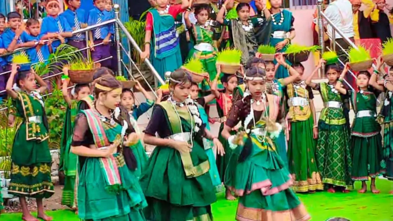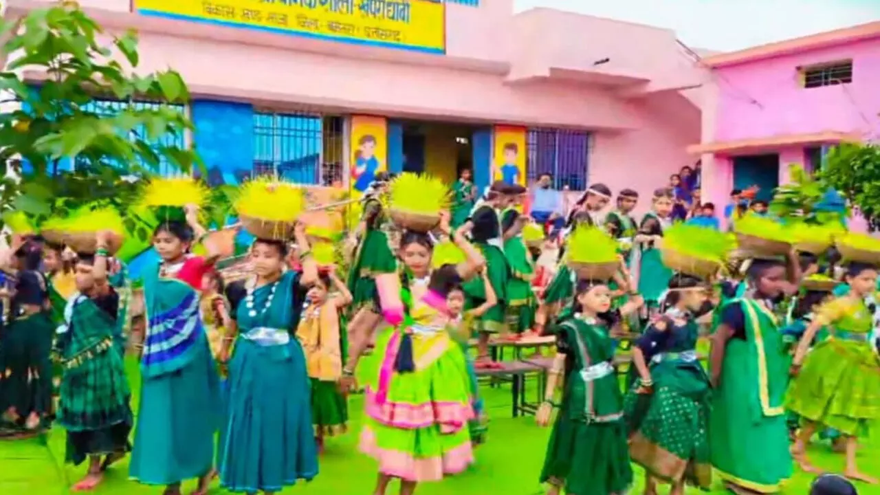 स्कूल में मना 'लईका हरेली' तिहार: हरे कपड़ों में बच्चों ने दी प्रस्तुति, भोजली नृत्य ने मोहा सभी का मन