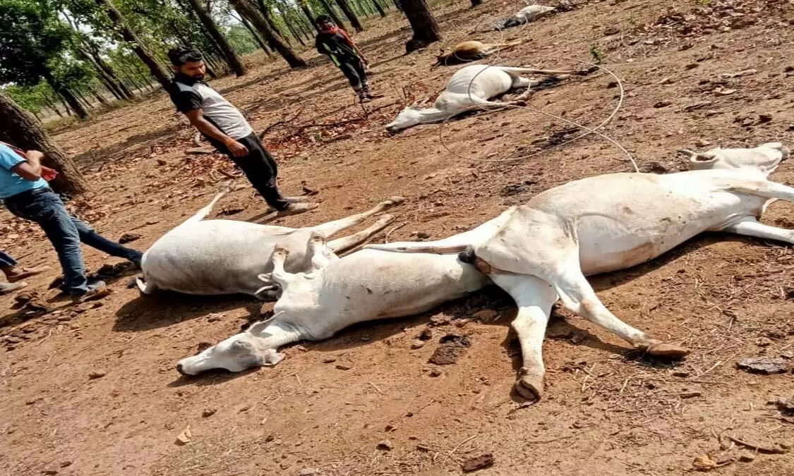 मैनपाट में बड़ा हादसा: टूटकर गिरे हाइटेंशन तार की चपेट में आकर दो गांवों में 10 मवेशियों की मौत