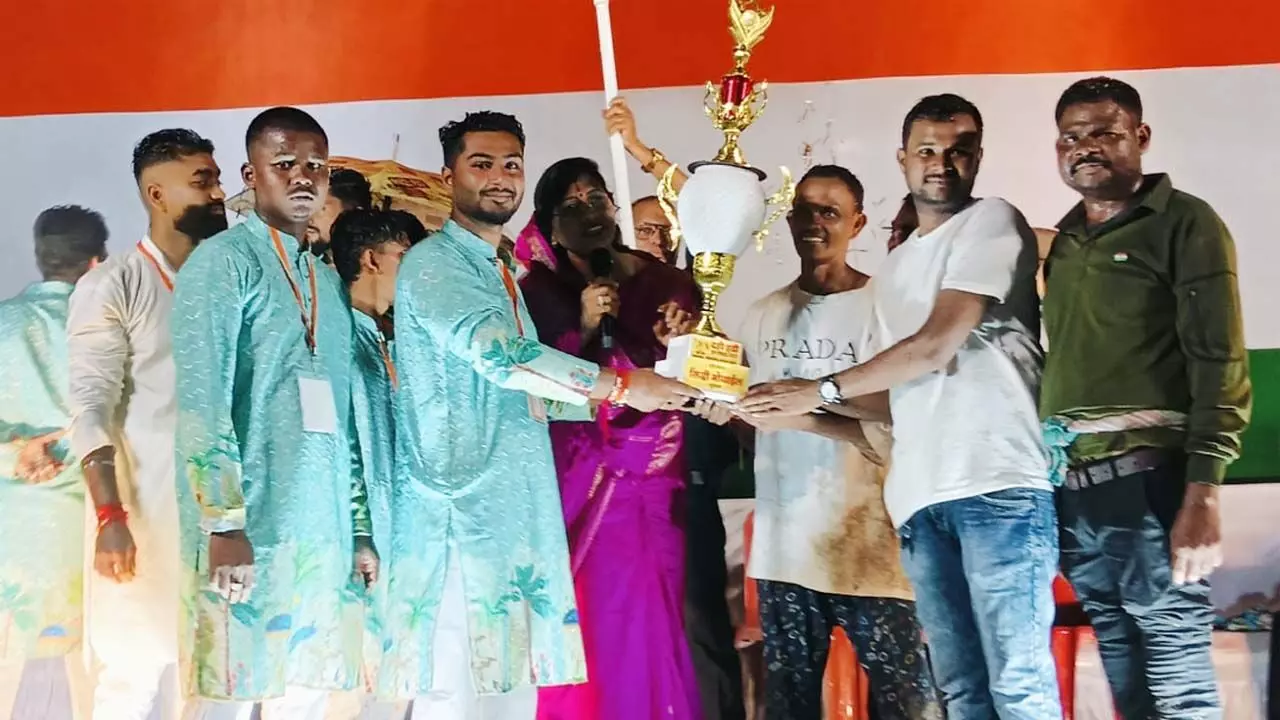 मंच पर इनाम लेते हुए कौड़ीकसा टीम के युवा