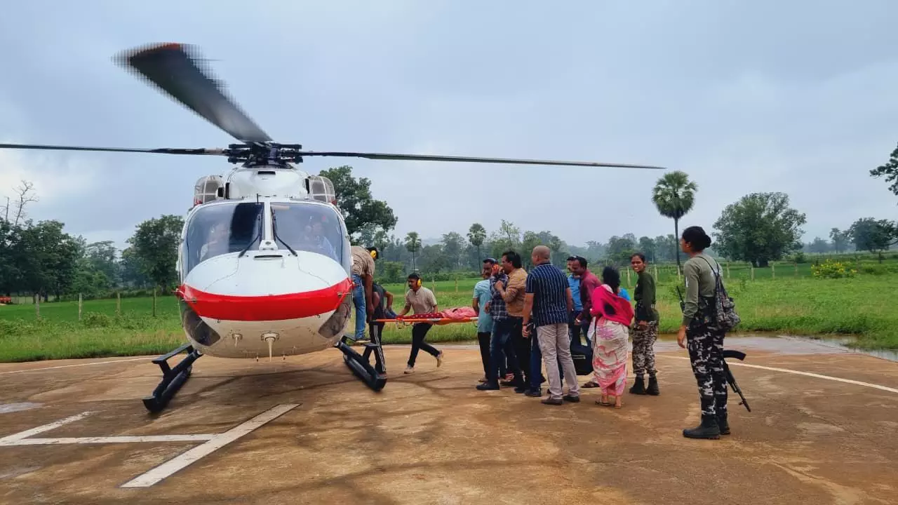 गढ़चिरौली पुलिस मुख्यालय ने हरिभूमि को जानकारी देते हुए बताया कि भामरागढ़ तहसील के अधीन मौजा अरेवाड़ा की आंगनवाड़ी कार्यकर्ता सीमा बम्बोले की बीमारी के कारण हालत गंभीर हो गया। भारी बारिश और बाढ़ के चलते परिजन उसे इलाज के लिए गढ़चिरौली नहीं ला पा रहे थे। गढ़चिरौली के मुख्य कार्यकारी अधिकारी जिला परिषद की जानकारी पर सीमा बम्बोले की उचित तथा त्वरित चिकित्सा की तत्काल आवश्यकता पर विचार करते हुए गढ़चिरौली पुलिस विभाग का पवन हंस हेलीकॉप्टर तुरंत भामरागढ़ के लिए रवाना किया गया। आंगनवाड़ी कार्यकर्ता सीमा बम्बोले को सुरक्षित रूप से गढ़चिरौली लाया गया है और आगे के इलाज के लिए उन्हें जिला जनरल अस्पताल गढ़चिरौली में भर्ती कराया गया है। फिलहाल उनकी हालत स्थिर है और खतरा टल गया है।