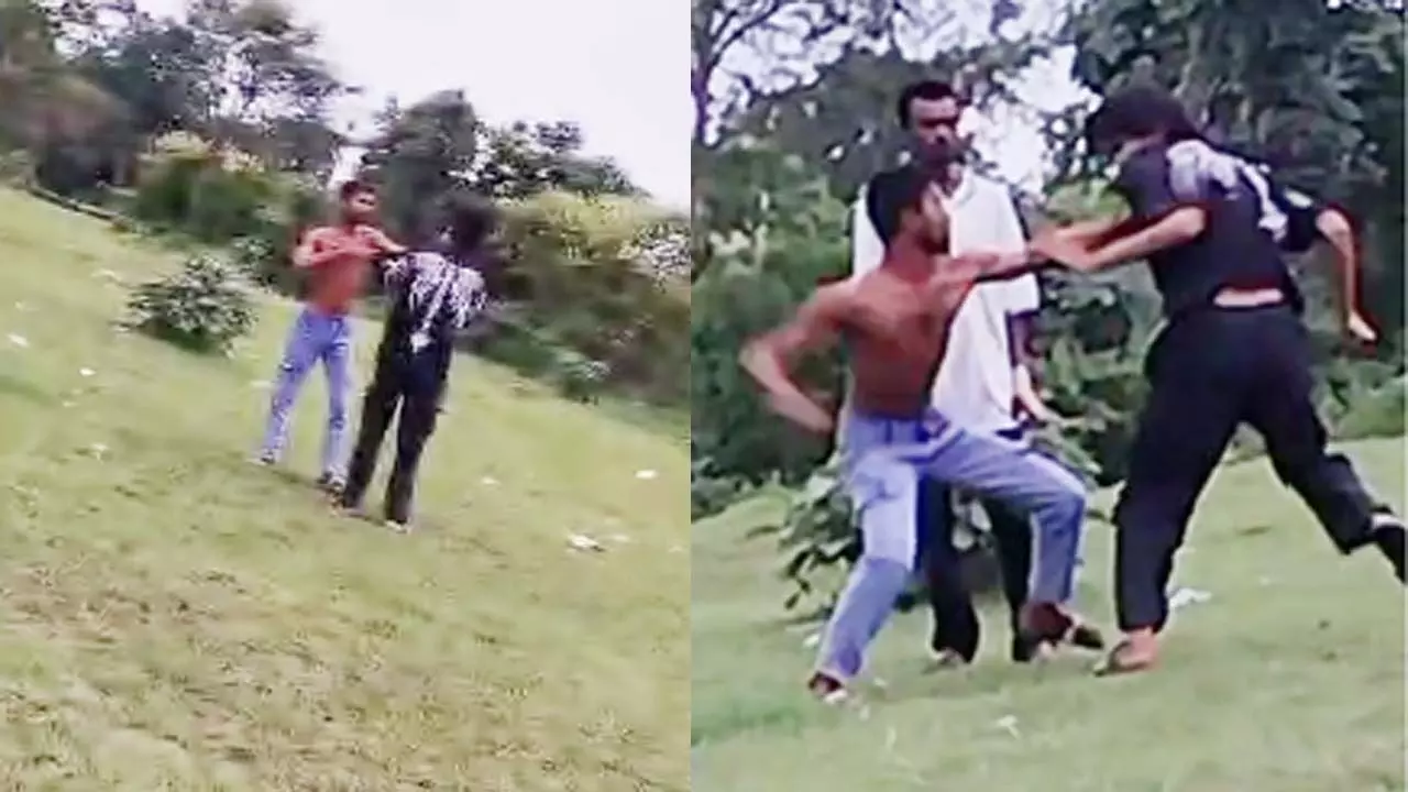 नशे की हालत में मारपीट करते हुए युवकों का ग्रुप
