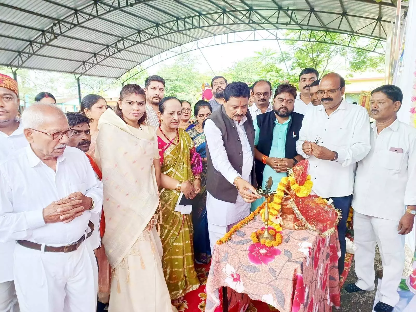 मुख्य अतिथि विधायक इंद्रकुमार साहू का स्वागत करते कार्यकर्ता
