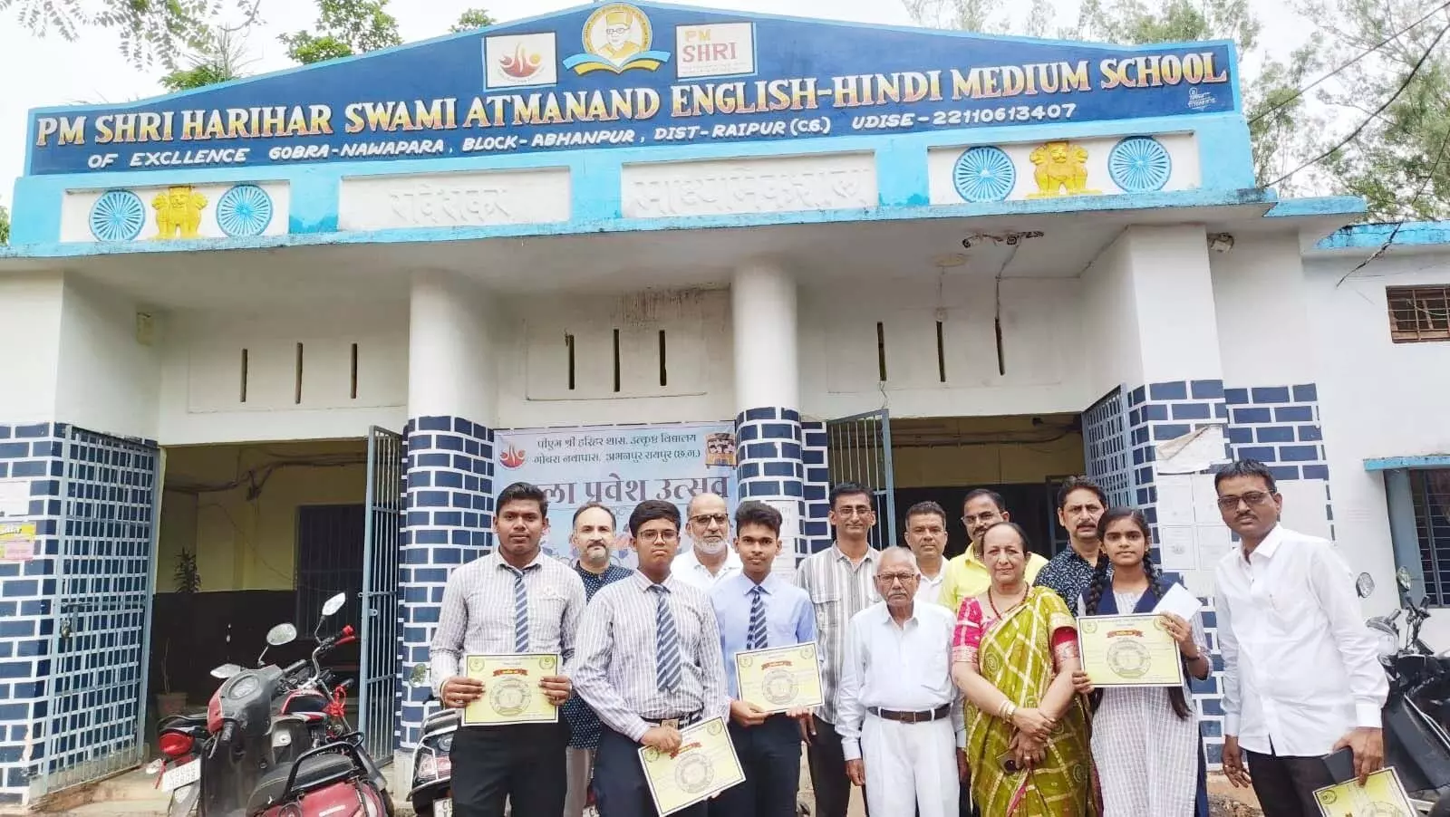 यह जानकारी देते हुए नगर पालिका परिषद के पूर्व सभापति रमेश तिवारी ने बताया कि, वे स्वयं एवं उनके जितने भी सहपाठी रहे हैं उन सभी ने एक साथ मिलकर छात्रों को पुरूस्कृत किया। उन्होंने बताया कि, 2024-25 में इस स्कूल से हायर सेकेण्डरी की परीक्षा में 89.8 फीसदी अंक लेकर प्रथम स्थान हासिल करने वाले विशाल राठौर पिता मुन्ना राठोर को 5 हजार रूपए, 87 फीसदी अंक लेकर द्वितीय स्थान प्राप्त करने वाले दो छात्र घनश्याम गिलहरे पिता कामता गिलहरे और विजुल बंजारे पिता घनाजी बंजारे को 3-3 हजार रूपए प्रदान किया गया। इसी तरह हाई स्कूल में 96.5 फीसदी अंक प्राप्त कर प्रथम स्थान हासिल करने वाले छात्र तरूण देवांगन पिता रवींद्र देवांगन को 5 हजार रूपए, 94.1 फीसदी अंक प्राप्त कर द्वितीय स्थान प्राप्त करने वाली छात्रा कुमारी शारदा साहू पिता भागवत साहू को 3 हजार रूपए तथा 91.1 फीसदी अंक प्राप्त कर तृतीय स्थान प्राप्त करने वाले छात्र रवि निर्मलकर पिता दिलीप निर्मलकर को 2 हजार रूपए की नगद राशि प्रदान किया गया।