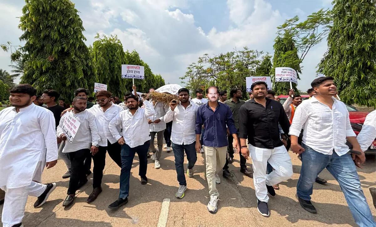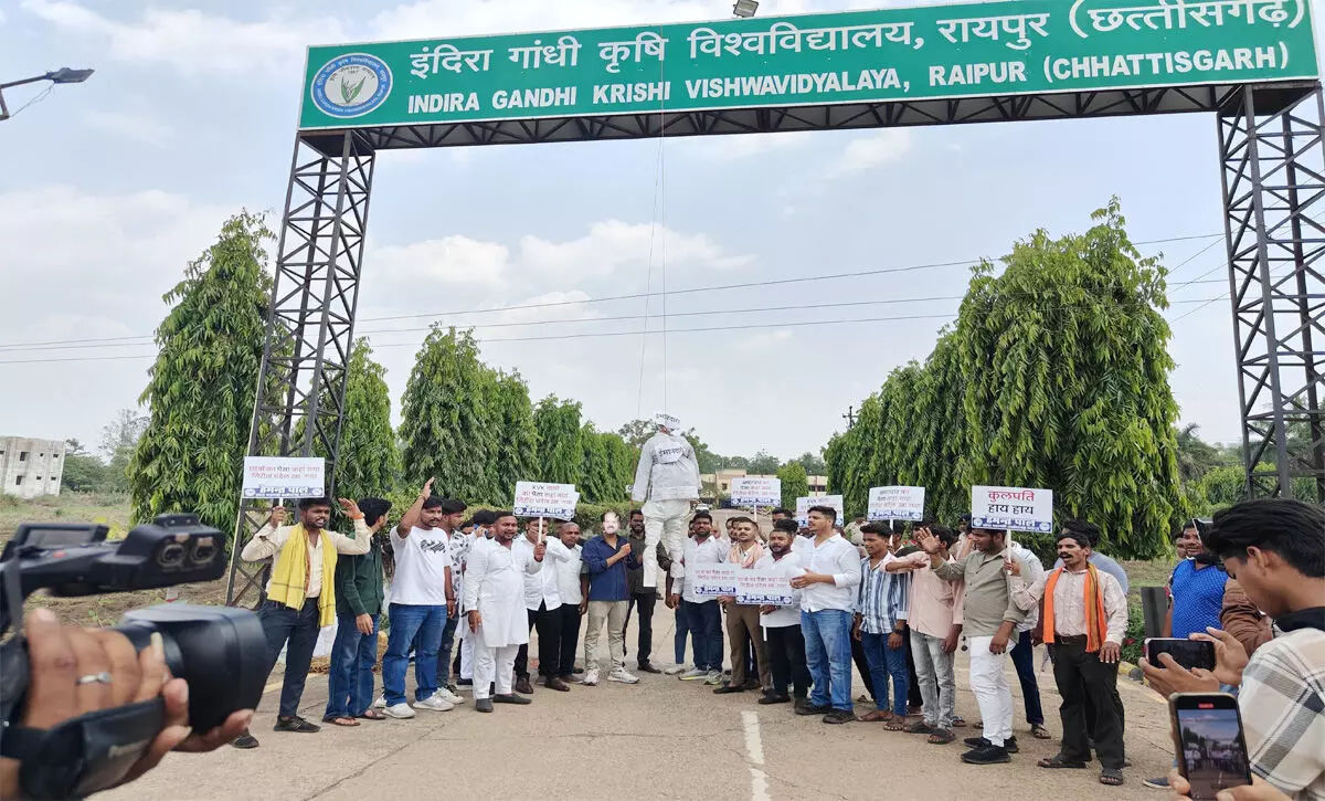 एनएसयूआई का अनोखा प्रदर्शन: इंदिरा गांधी कृषि विश्वविद्यालय के कुलपति को हटाने की मांग