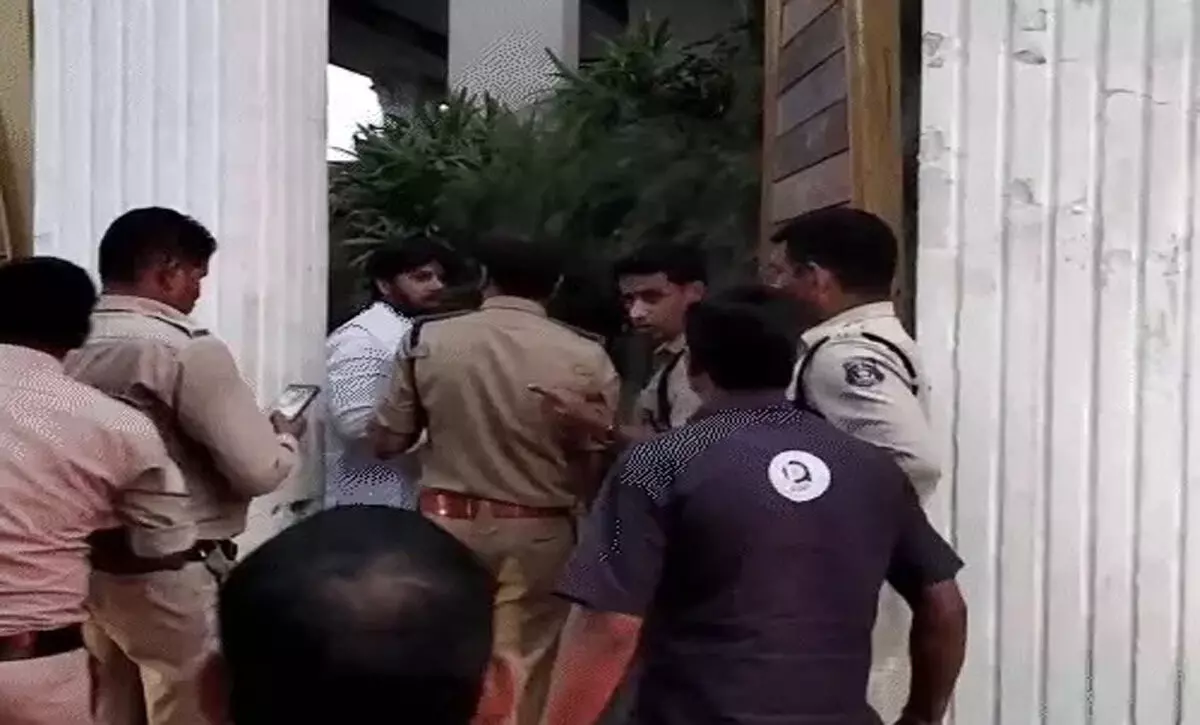 शुभ्रा सिंह को हिरासत में लेने पहुंचे पुलिसकर्मियों के साथ गेट पर ही बहसबाजी।