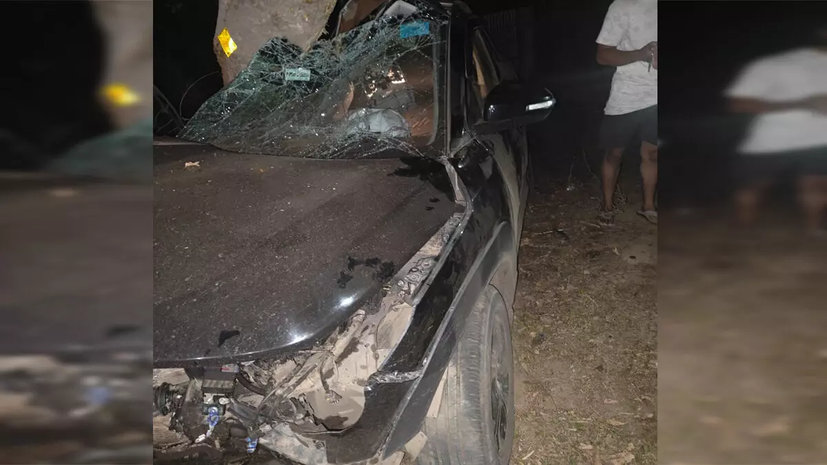 सड़क हादसे में क्षतिग्रस्त हुई कार