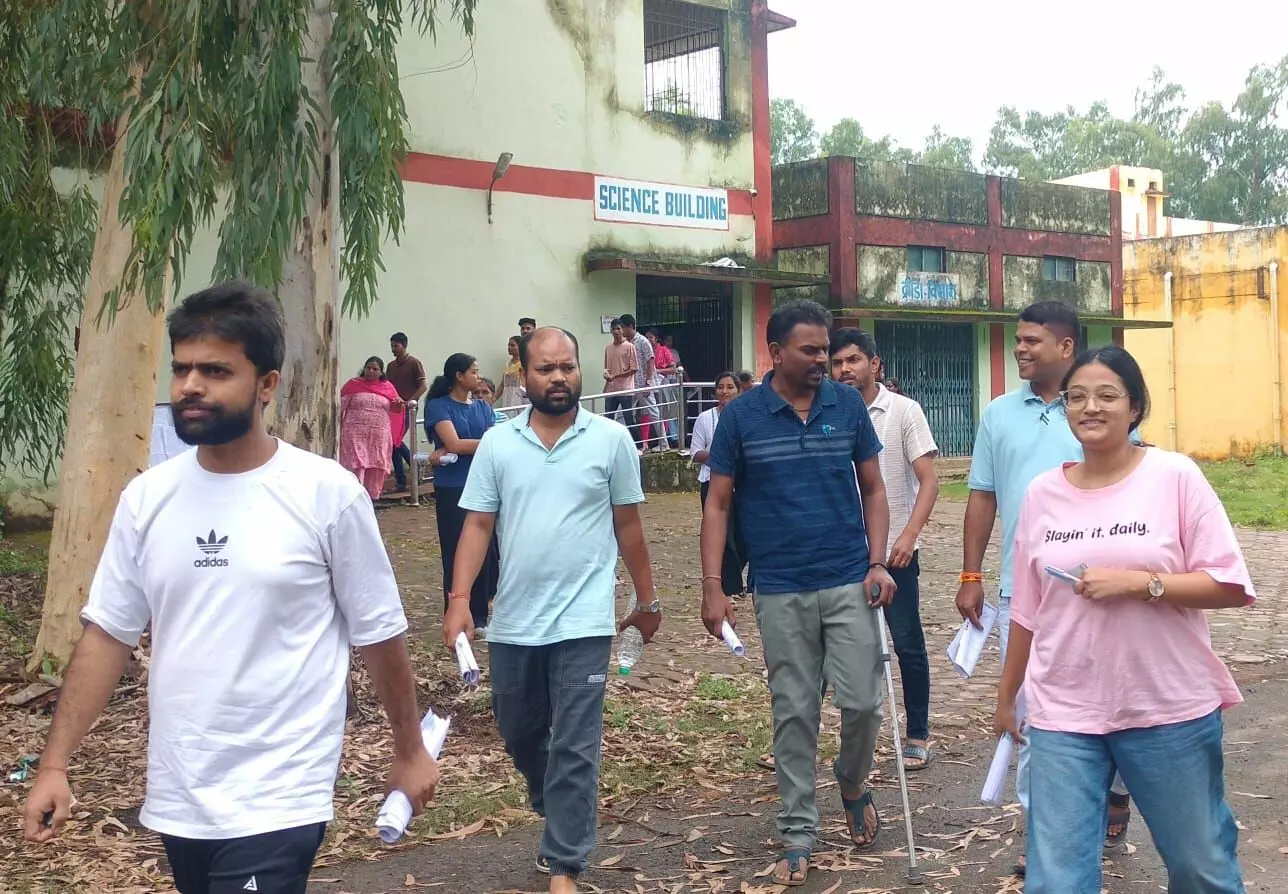 जगदलपुर। व्यावसायिक परीक्षा मंडल द्वारा आयोजित सब इंजीनियर भर्ती परीक्षा में 1099 पंजीकृत अभ्यर्थियों में से 759 अभ्यर्थियों ने परीक्षा दी, वहीं 340 अभ्यर्थी अनुपस्थित रहे। कड़े नियम कायदों के बीच शहर के तीन सेंटरों हुई परीक्षा में जहां फुल शर्ट पहनकर आए तीन अभ्यर्थी का आस्तीन कैची से काट दिया गया। वहीं दूसरी ओर गले की चेन, तुलसी का माला एवं कान की बालियां सहित अन्य आभूषण भी उतरवा लिए गए।