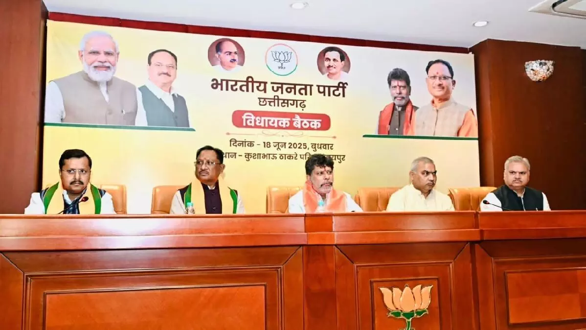 संगठनात्मक बैठक के बाद प्रदेश कार्यालय में भाजपा विधायक दल की बैठक भी हुई। इसमें मुख्यमंत्री विष्णुदेव साय, राष्ट्रीय सह संगठन महामंत्री शिवप्रकाश, क्षेत्रीय संगठन महामंत्री अजय जम्वाल, प्रदेश प्रभारी नितिन नबीन, प्रदेशाध्यक्ष किरण सिंह देव, प्रदेश संगठन महामंत्री पवन साय, उपमुख्यमंत्री द्वय अरुण साव व विजय शर्मा, प्रदेश सरकार के सभी मंत्री व विधायकगण उपस्थित थे। बैठक में प्रदेश सरकार के कार्यकाल में अर्जित उपलब्धियों, कार्यक्रमों व योजनाओं की चर्चा की गई और महत्वपूर्ण बिन्दुओं पर मार्गदर्शन किया गया।