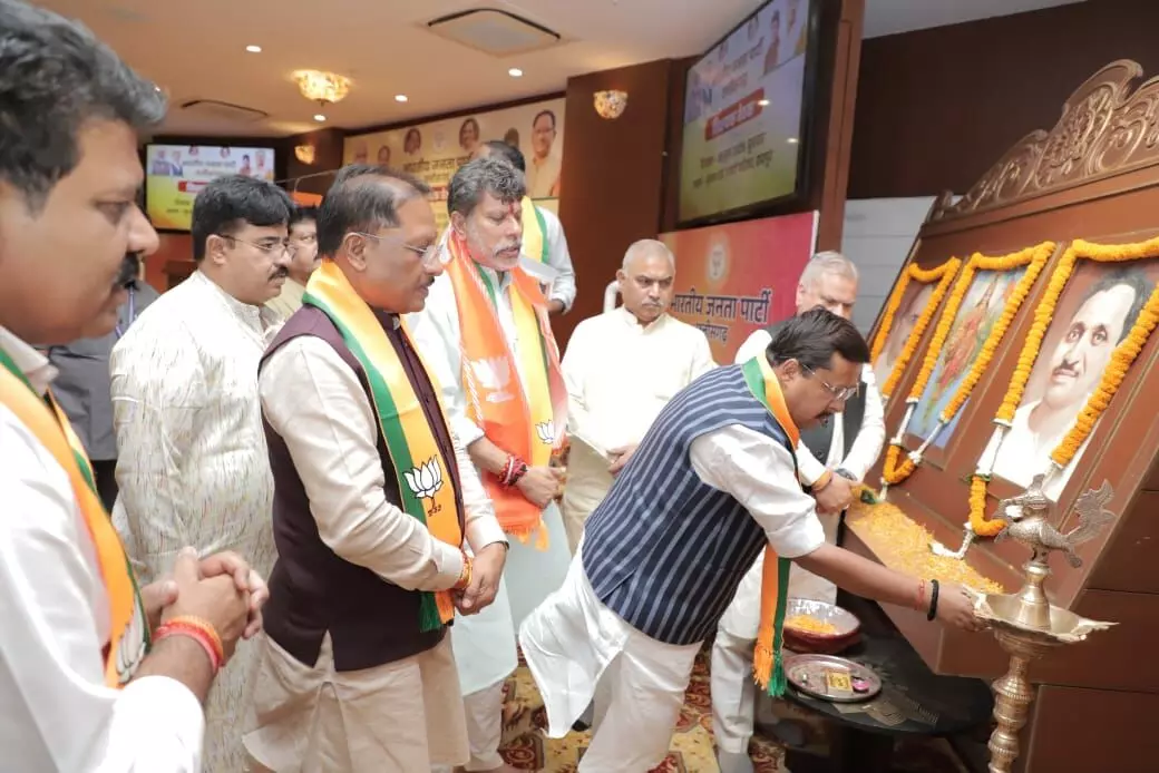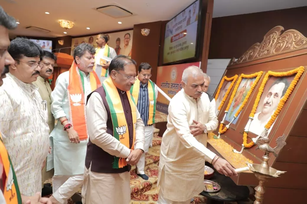 रायपुर। भारतीय जनता पार्टी की बुधवार को कुशाभाऊ ठाकरे परिसर स्थित प्रदेश कार्यालय में संगठनात्मक गतिविधियों कार्यक्रमों, योजनाओं व उपलब्धियों की समीक्षा की दृष्टि से बैठकों का आयोजन किया गया। बैठकों में भाजपा के राष्ट्रीय सह संगठन महामंत्री शिवप्रकाश, क्षेत्रीय संगठन महामंत्री अजय जम्वाल और प्रदेश प्रभारी नितिन नबीन ने महत्वपूर्ण बिन्दुओं पर मार्गदर्शन किया। भाजपा प्रदेश कार्यालय में सबसे पहले पुण्यश्लोका लोकमाता महारानी अहिल्याबाई होल्कर जयंती और 'संकल्प से सिद्धि : 11 साल बेमिसाल' अभियान समिति के साथ बैठक हुई और इन अभियानों के क्रियान्वयन और अब तक की प्रगति की समीक्षा की गई।