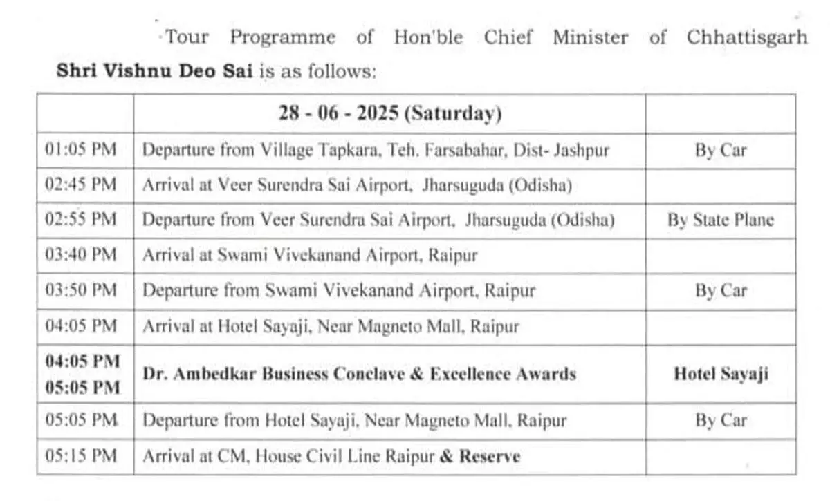 सीएम साय का मिनट टू मिनट कार्यक्रम