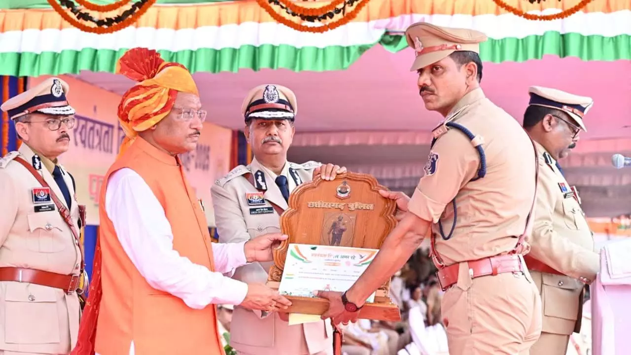 स्वतंत्रता दिवस समारोह: सीएम साय ने पुलिस अधिकारियों और जवानों को किया सम्मानित