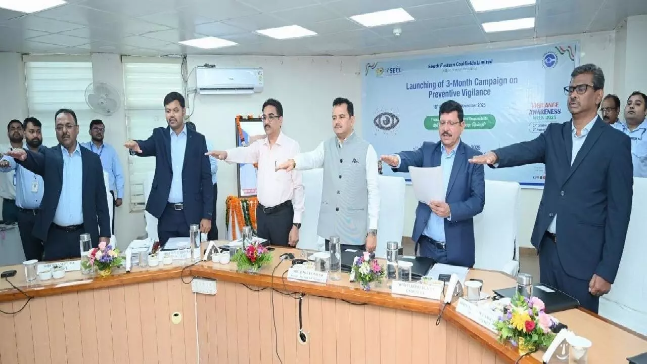 रायपुर। एसईसीएल मुख्यालय बिलासपुर में केंद्रीय सतर्कता आयोग, नई दिल्ली के निर्देशानुसार तीन माह के निवारक सतर्कता (Preventive Vigilance) अभियान का शुभारंभ किया गया। इस अवसर पर मुख्य अतिथि के रूप में मुख्यमंत्री के सचिव पी. दयानन्द उपस्थित थे। कार्यक्रम की शुरुआत दीप प्रज्वलन से हुई। इसके पश्चात् अतिथियों द्वारा सरदार वल्लभभाई पटेल के चित्र पर माल्यार्पण कर उन्हें नमन किया गया। तत्पश्चात् कोल इंडिया कॉर्पोरेट गीत प्रस्तुत किया गया। इसके उपरांत सीएमडी एसईसीएल हरीश दुहन ने सभी उपस्थितों को सत्यनिष्ठा की शपथ दिलाई।