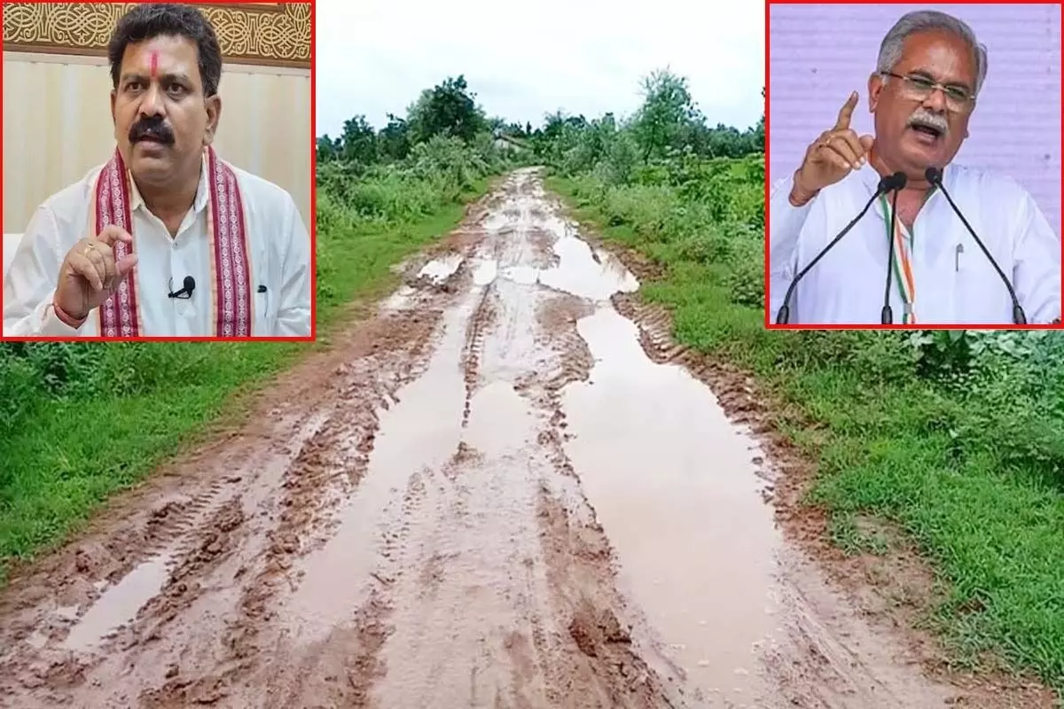 खराब रोड पर डिप्टी सीएम विजय शर्मा और भूपेश बघेल के बीच नोकझोंक