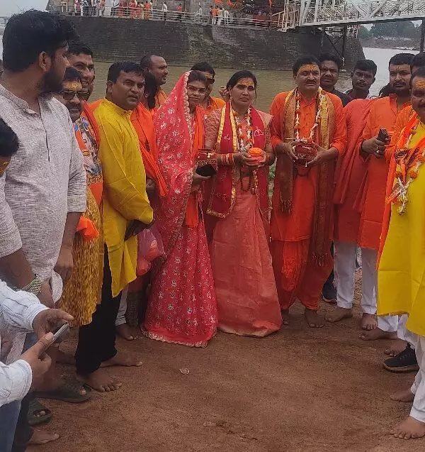 श्यामकिशोर शर्मा- नवापारा राजिम। अभनपुर विधायक इंद्रकुमार साहू अपनी धर्मपत्नी के साथ बुधवार को पवित्र सावन मास के पावन अवसर पर श्री शिवधाम यात्रा पर निकले। इस अवसर पर विधायक श्री साहू हजारों कार्यकर्ताओं के साथ सुबह सर्वप्रथम चंपारण स्थित श्री चम्पकेश्वर नाथ महादेव मंदिर में विधि विधान पूर्वक जलाभिषेक पूजा अर्चना कर अपने शिवधाम यात्रा का प्रारंभ किया।