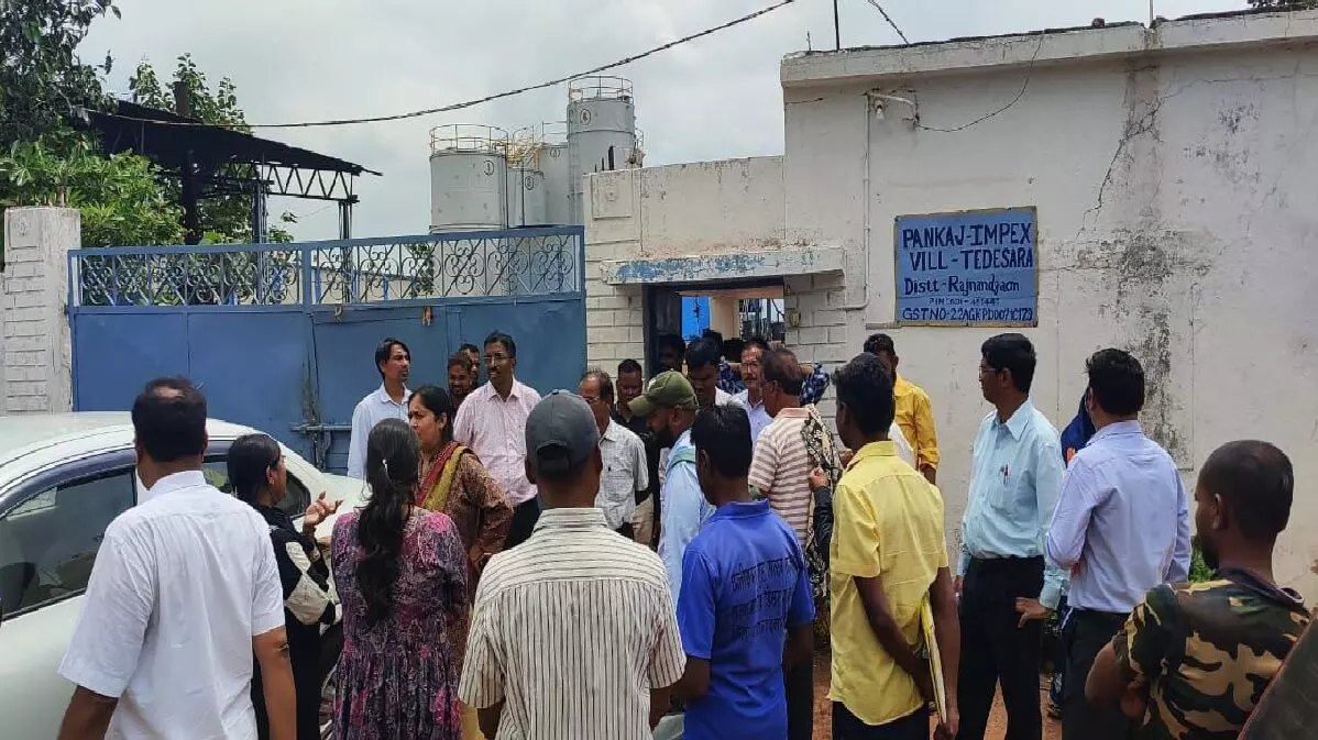 फैक्ट्री के बाहर खड़े अधिकारी