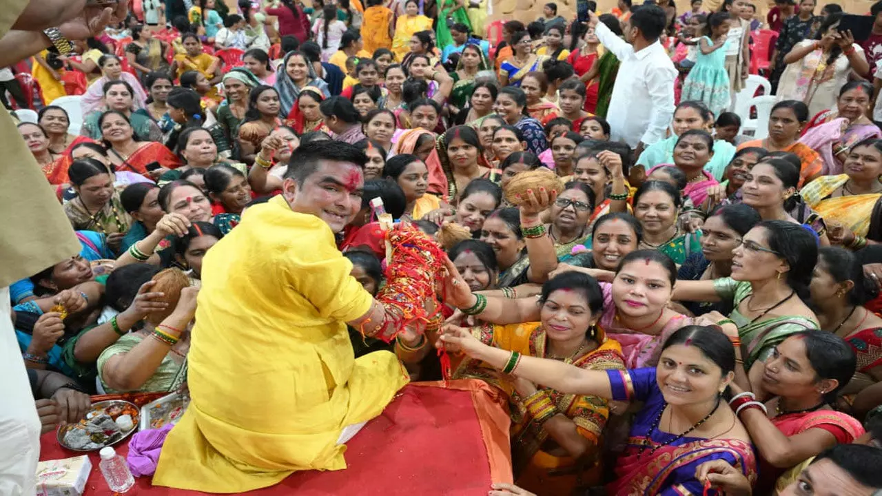 विधायक रिकेश सेन को महिलाओं ने बांधी राखी
