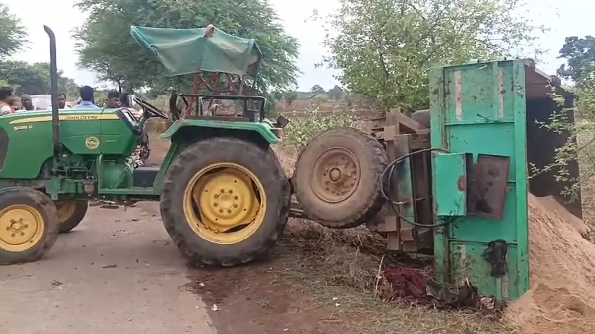 सड़क हादसा: ट्रैक्टर से टकराकर बाइक सवार की मौत, रेत से भरी ट्रॉली भी पलट गई