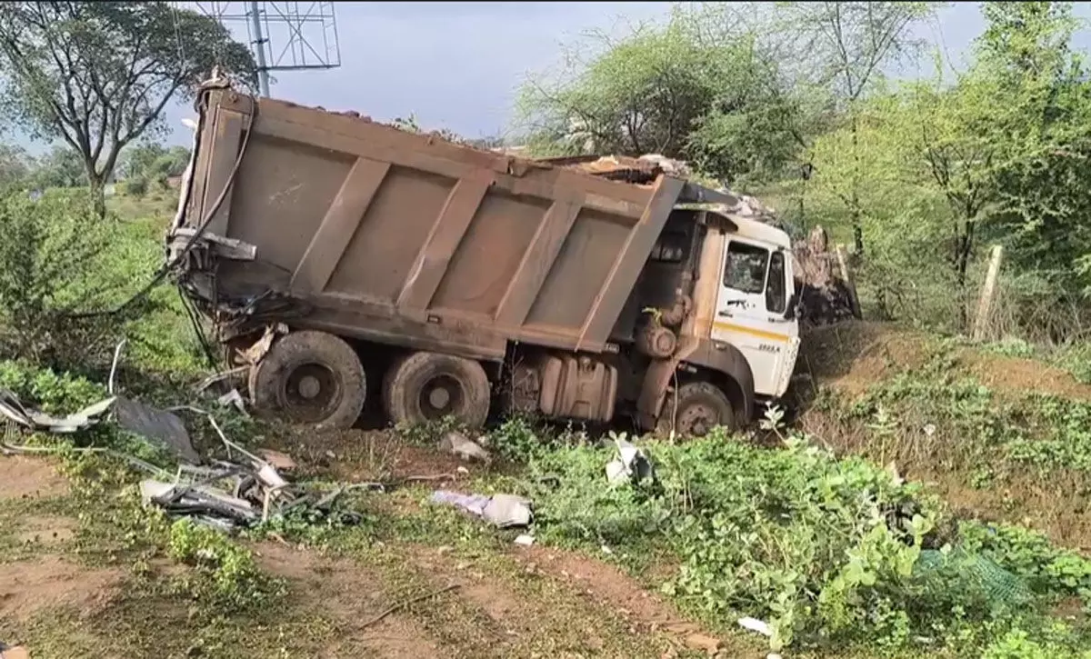 डंपर से भिडंत के बाद बस के उड़े परखच्चे