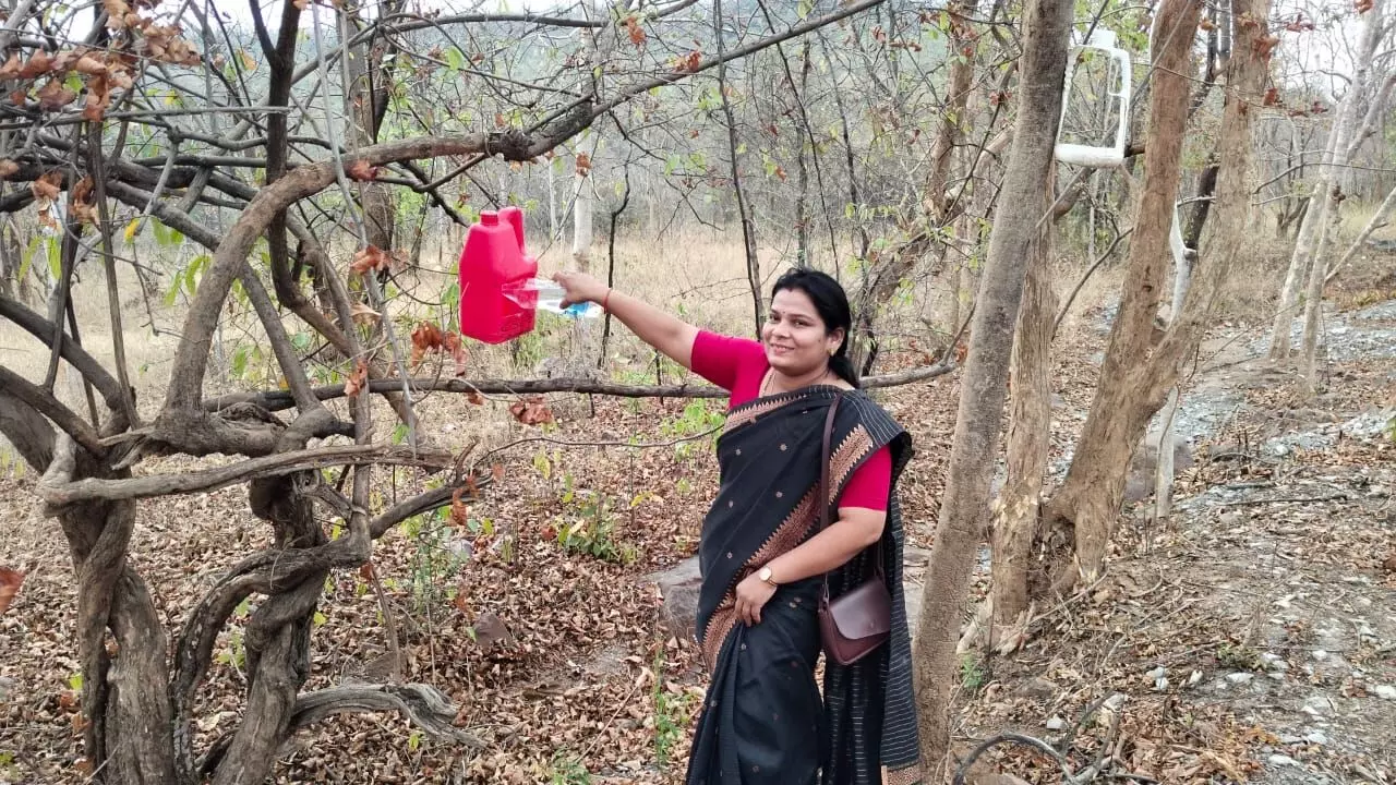 पक्षियों के लिए ठंडा पानी रखते हुए लोग