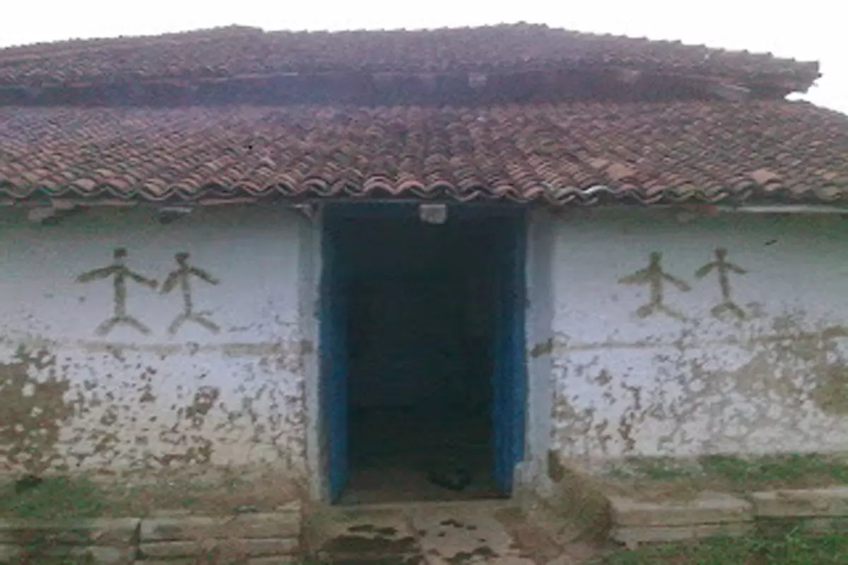 गाय के गोबर से घरों के सामने बनाते है मनुष्याकृति