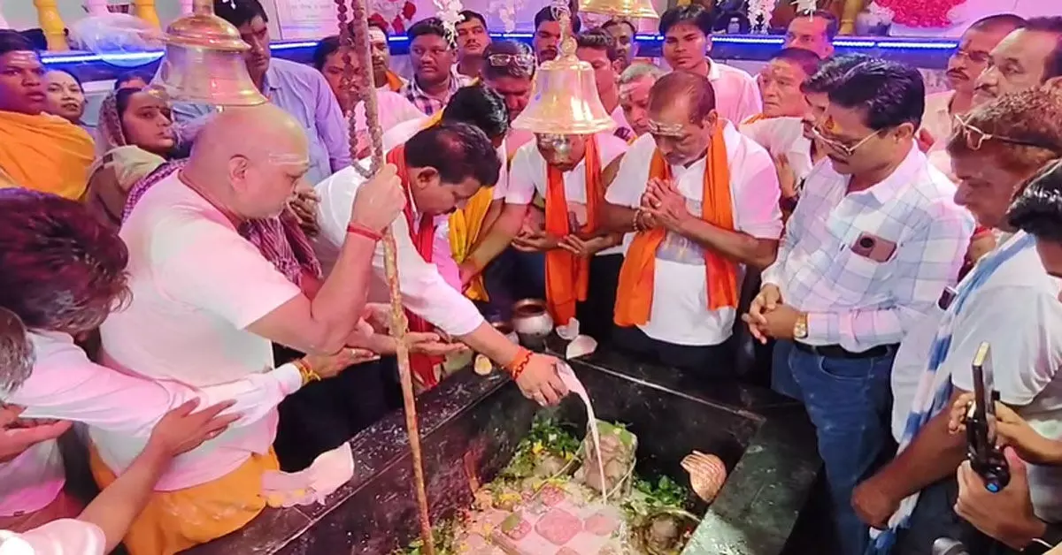 संजय यादव - कवर्धा। आज सावन माह का पहला सोमवार है भगवान शिव को समर्पित इस पर्व के पहले दिन पंचमुखी बुढ़ा महादेव मंदिर से भोरमदेव के लिए पदयात्रा निकली। इस दौरान प्रदेश के डिप्टी सीएम विजय शर्मा ने बुढ़ा महादेव मंदिर में पूजा अर्चना कर पदयात्रा का शुभारंभ किया। वहीं शर्मा के साथ ही सांसद संतोष पाण्डेय भी शामिल हुए।