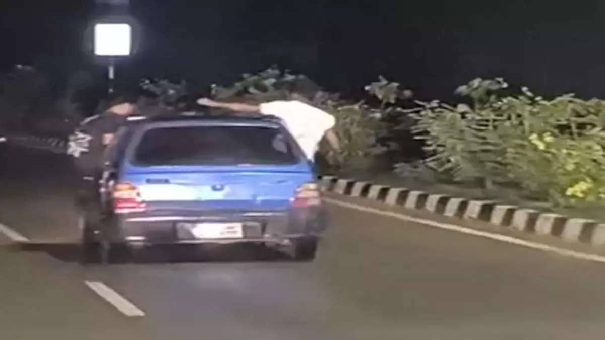 चलती कार पर स्टंट: खिड़की से निकलकर डांस कर रहे थे युवक, VIDEO वायरल