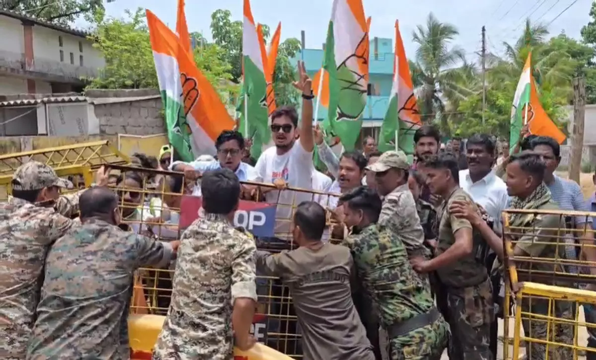 प्रदर्शन करते हुए कांग्रेस कार्यकर्ता