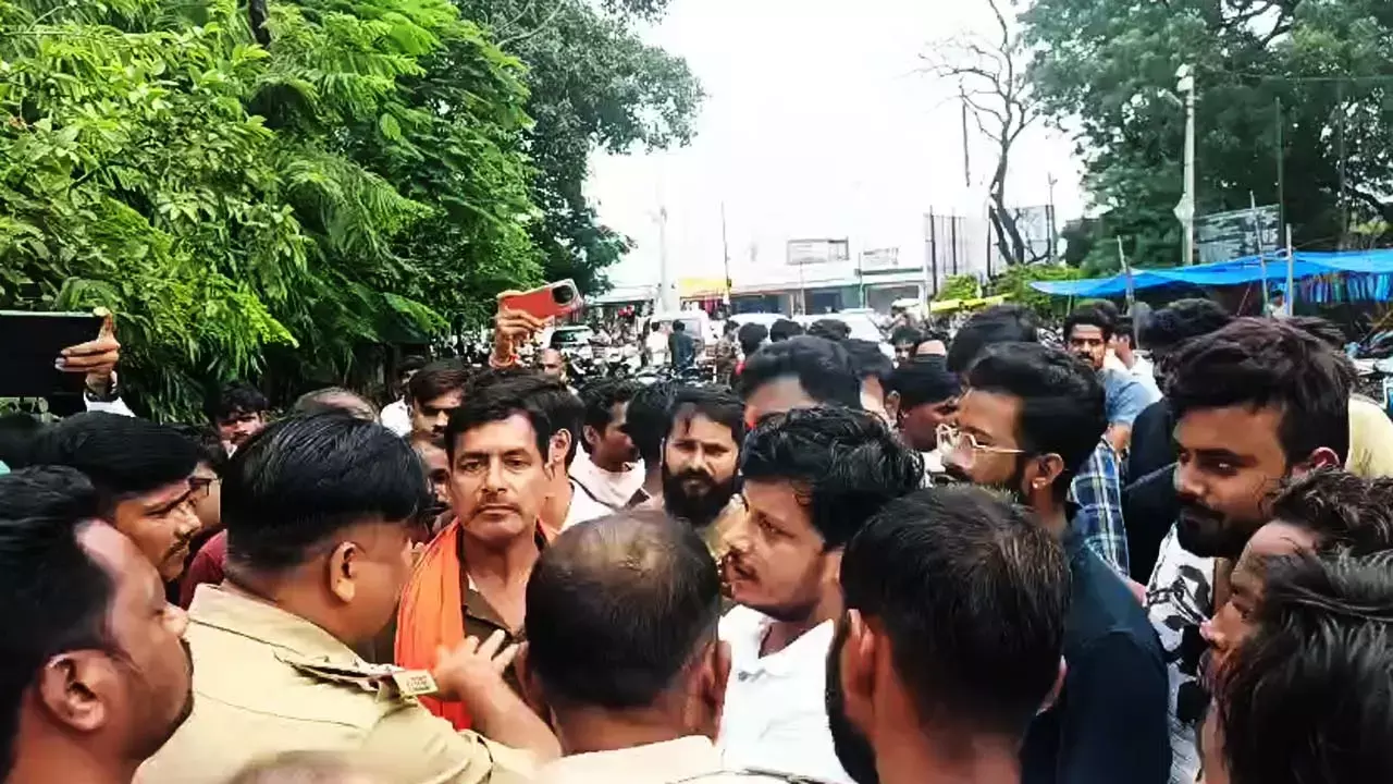 घटना के विरोध में हिंदू ससंगठनों ने परीक्षा केंद्र के बाहर जोरदार प्रदर्शन किया। जिला प्रशासन को ज्ञापन सौंपकर आरोपियों के विरुद्ध कड़ी कार्रवाई की मांग की है। संगठनों ने चेतावनी दी है कि, यदि तत्काल 72 घंटे के भीतर निलंबन की कार्यवाही नहीं हुई तो विश्व हिन्दू परिषद बजरंग दल और समस्त हिन्दु संगठनों ने चरणबद्ध तरीके से आंदोलन करने को विवश होगें।