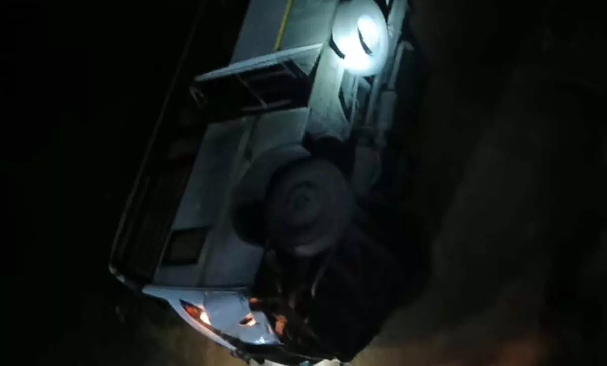 पुलिया में गिरी हुई बस