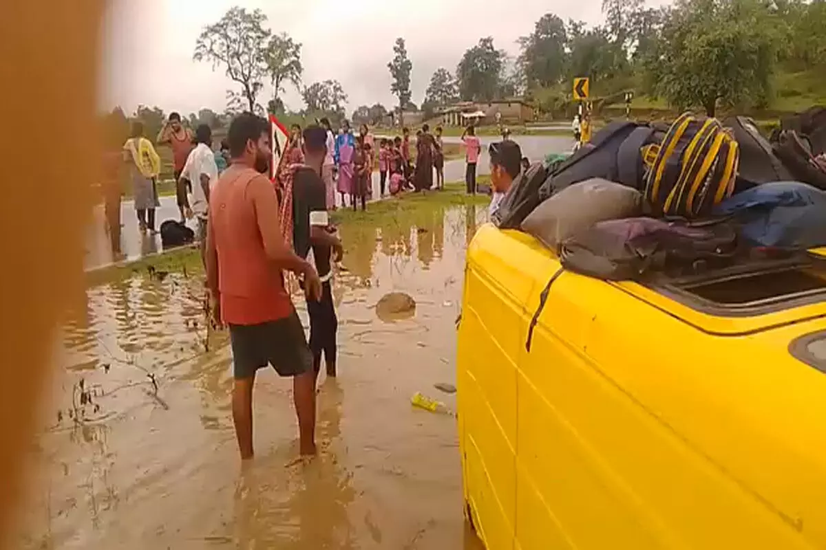 स्कूल वैन खेत में पलटी: ब्रह्मपुर से वृंदावन के रास्ते पर हादसा, ग्रामीणों ने बच्चों को निकाला