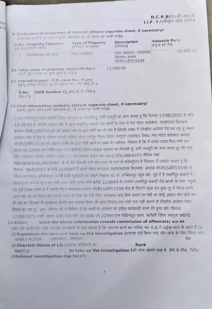 युवक उन नकाबपोशों से बचाने के लिए भारत यादव लक्ष्मीपुर बंजारी गली की तरह अपनी बाइक को लेकर जा रहे थे। तभी नकाबपोशों ने उन्हें घेरकर उनसे बाइक को लूट लिया, फिर युवक की मोबाइल को लूटने की कोशिश करने लगा तभी युवक फोन को फेक दिया। इसके बाद युवक को धक्क मुक्की करते नकाबपोश फरार हो गए। वहीं युवक जैसे -तैसे कर अस्पताल पहुंचा फिर सारी घटना परिजनों को बताई। इसके बाद इसकी शिकायत करने थाना परिजन पहुंचे पुलिस ने घटना को हल्के में लेते हुए चोरी की रिपोर्ट दर्ज कर दी