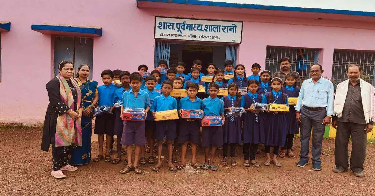 इधर, शासकीय पूर्व माध्यमिक शाला रानो में नवकार महिला मंडल परपोड़ी ने नवप्रवेशी बच्चों को जूते और मोज़े दिया गया। इस मौके पर बच्चे उपहार पाकर बहुत ही खुश हुए, जो कि स्वयं इस मण्डल की वर्तमान सदस्य और कोषाध्यक्ष है। शाला परिवार ने नवकार महिला मंडल को बहुत- बहुत धन्यवाद ज्ञापित किया। शाला परिवार भविष्य में भी इस तरह के सहयोग की अपेक्षा रखता है। नवाचारी शिक्षिका प्रतीक जैन ने कहा कि, इस तरह से उपहार पाकर बच्चे बहुत खुश होते हैं। इससे बच्चों की उपस्थिति और प्रदर्शन आदि में सुधार भी आता है। साथ ही संघ एवं समुदाय को भी प्रेरणा मिलती है। शाला परिवार ने शिक्षिका के इस कार्य की खूब सराहना की । इस अवसर पर शाला समिति के अध्यक्ष मंशाराम साहू, प्रधान पाठक किशुन साहू संस्था के सभी सदस्य और बच्चे उपस्थित थे।